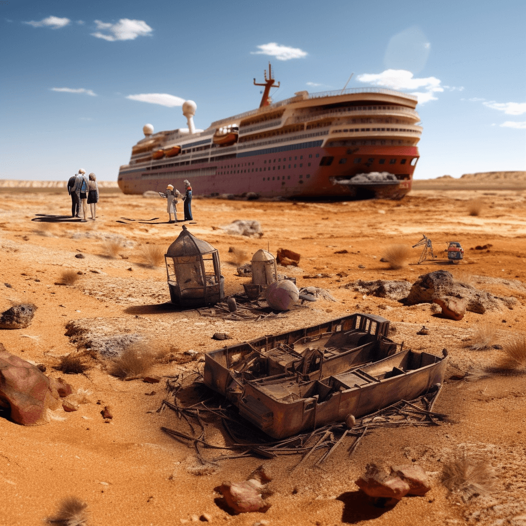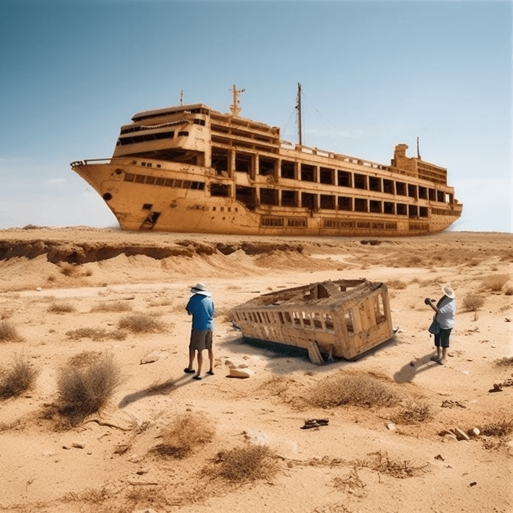 Gletscher schmelzen. Seen und Flüsse trocknen aus. Dabei werden Artefakte und Ansiedlungen freigelegt wie zum Beispiel im Edersee im Dürresommer 2022. Trips zu den „Resurfaced“ – wieder aufgetauchte Stätten, Schiffe und Artefakte – bietet Potenzial für die Touristik-Industrie. Natürlich auch, um den wegfallenden Badetourismus zu kompensieren. Wer sich in der zukünftigen Klima-Rezession noch Urlaube leisten kann, wird seinen statusträchtigen „Eco-Friendly Hiking Trip“ mit einem „Ground Walk“ zu einem „Resurfaced“ kombinieren.