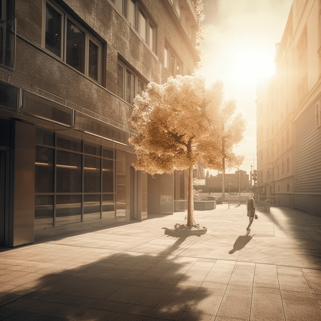 Schon heute sind Bäume dem sommerlichen Stadtklima kaum noch gewachsen. Immer öfter rufen daher Stadtverwaltungen die Bewohner*innen zum Gießen auf während Feuerwehren öffentliche Parkanlagen bewässern. Grund dafür sind fallende Grundwasserspiegel durch geringere Niederschläge. Gleichzeitig steigt aber der Wasserverbrauch. Insbesondere auch, weil in den Städten die Hitze grundsätzlich extremer als im Umland ist: Asphalt und dichte Bebauung sind einfach gute Wärmespeicher. Bäume könnten daher in Zukunft aus dem Stadtbild verschwinden. Damit fallen aber auch wichtige Schattenspender aus. Künstliche „Bäume“ könnten zur Normalität werden.